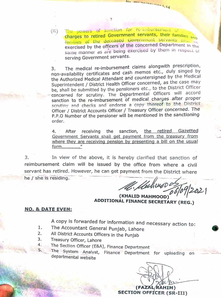Share Facebook Twitter LinkedIn WhatsApp Pinterest EmailReimbursement of Medical claims of Pensioners From One District to another District 06.09.2021